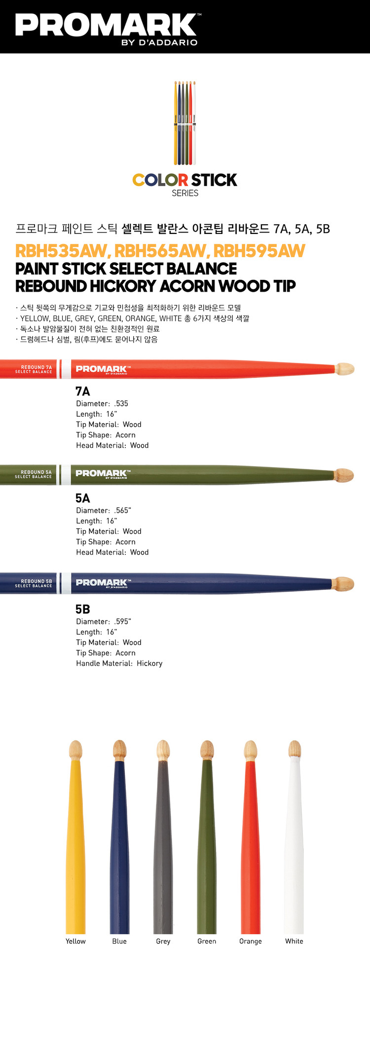 프로마크 PROMARK RBH595AW-BLUE(5B) 셀렉트(리바운드)발란스 아콘팁 히코리 우드팁/블루 (681756)