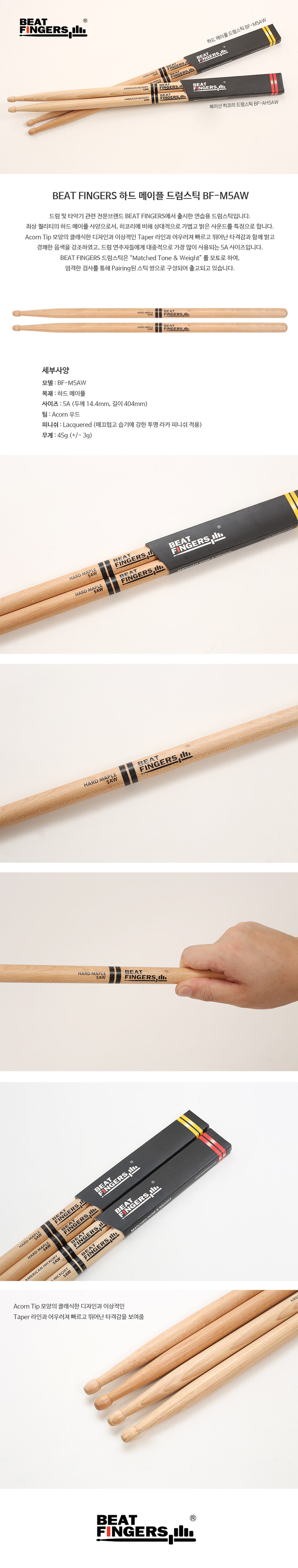 비트핑거스 BEAT FINGERS 하드 메이플 드럼스틱 BF-M5AW (5A 사이즈) / BFM5AW
